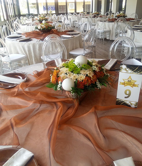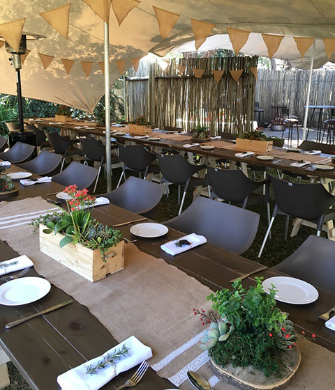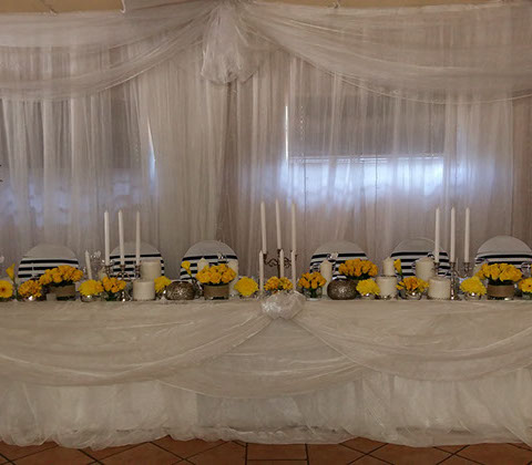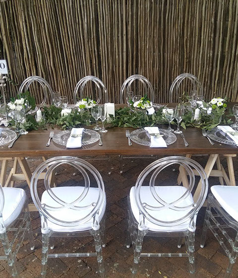 We offer a wide selection of cutlery, crockery, table decorations and table linen as well as custom specialised decor upon request.